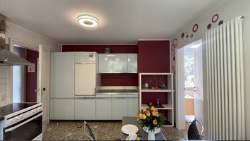 - großer runder Esstisch mit vier Sitzgelegenheiten