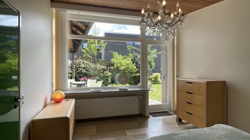 Die Wohnung ist sehr hell, großzügig und mit 70 Quadratmetern für zwei bis vier Personen (1 Schlafzimmer) perfekt geeignet. Sie liegt ebenerdig im Vorderhaus und hat einen eigenen naturnahen Garten mit Terrasse.