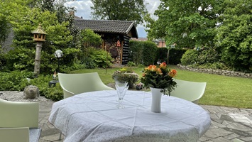 Die Terrasse ist mit Tisch und 4 Stühlen ausgestattet, die Rasenfläche ist nur für Sie da!