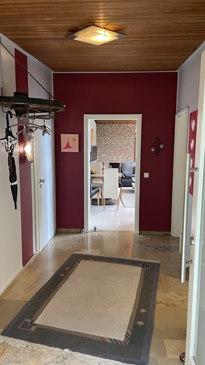Der Eingangsbereich begrüßt Sie freundlich und hell mit Garderobe und Schuhschrank - so wissen Sie direkt wohin mit Ihren Sachen.